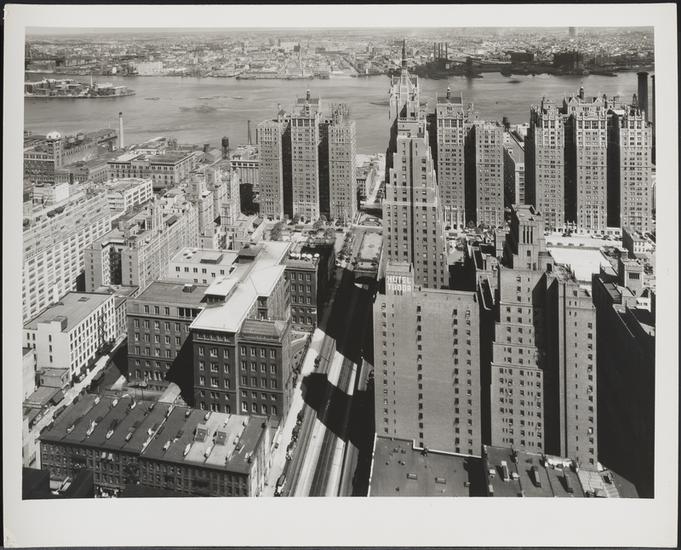 [East 42nd Street and First Avenue. Tudor City. View from roof terrace.]