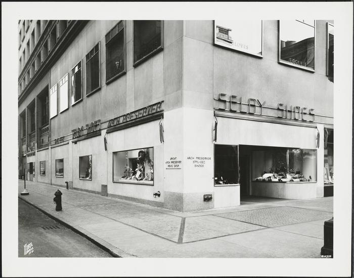 Fifth Avenue near 35th Street. Wise Shoe, storefront.