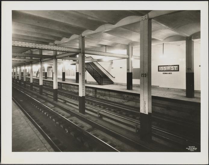 155 Street and St. Nicholas Avenue. Independent Subway System Station. Upper platform from turnstiles