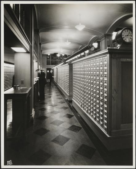 535 West 114th Street. Columbia University Library. Interior, reference desk at call book desk