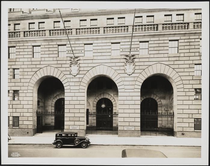 [Grand Army Plaza and Eastern Parkway. Brooklyn Public Library, central branch. Entrance.]