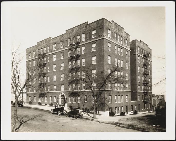 183rd Street at the N.E. corner of Ft. Washington Avenue. Ft. Tryon Arms Apartments.