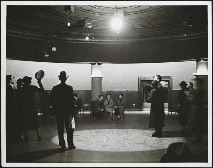 200 Central Park West. American Museum of Natural History. Hayden Planetarium. Interior, planetarium with staff members super-imposed