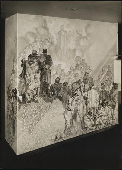 [30 Rockefeller Plaza. GE Building. Interior, mural painting by Frank Brangwyn, "Man's Conquest of the Material World".]