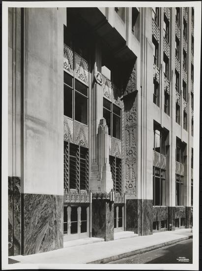 60 Wall Street [70 Pine Street.] Cities Service Company. Exterior detail, aluminum observatory