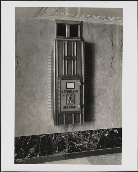 60 Wall Street [70 Pine Street]. Cities Service Company. Interior, information desk, main lobby