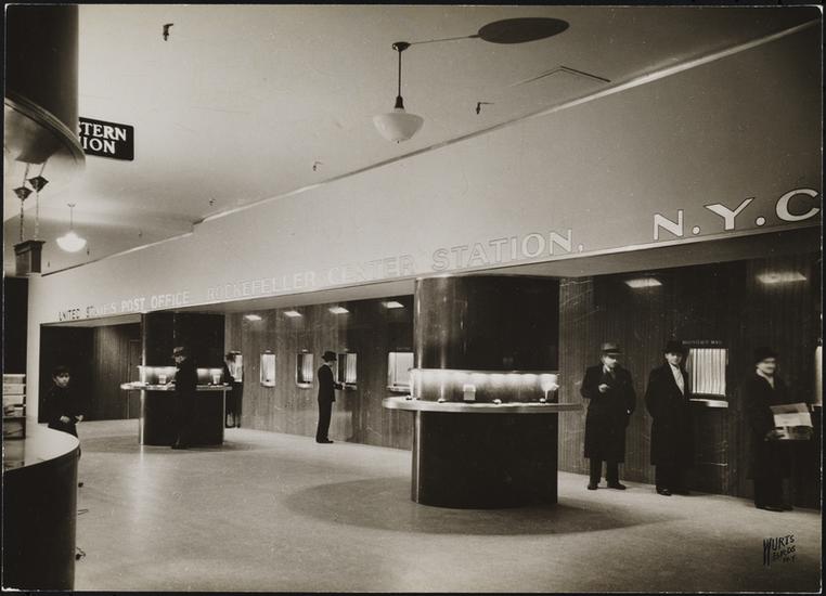 30 Rockefeller Plaza. GE Building. Interior, basement looking southwest along south hall at barbershop