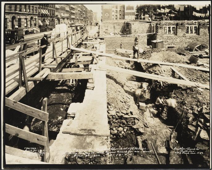 Abyssinian Baptist Church W 138 St. N.Y.C. Looking South along [...] trench for E. Wall to church & West wall to Community House
