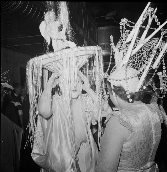 Art Students League of New York "Dream Ball" [Dancing couple wearing elaborate headpieces.]