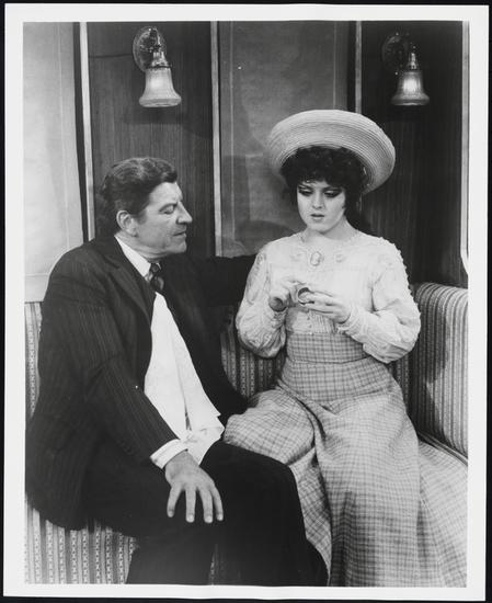 [Robert Preston as Mack Sennett and Lisa Kirk as Lottie Ames in "Mack & Mabel".]