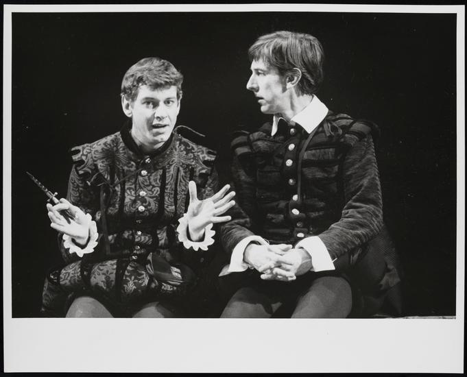 [Brian Murray as Rosencrantz, Noel Craig as Hamlet and John Wood as Guildenstern in "Rosencrantz and Guildenstern Are Dead".]