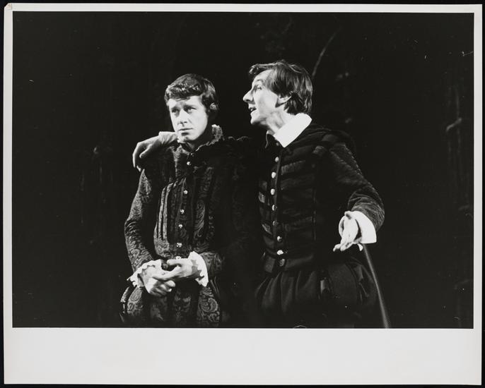 [Brian Murray as Rosencrantz, Noel Craig as Hamlet and John Wood as Guildenstern in "Rosencrantz and Guildenstern Are Dead".]
