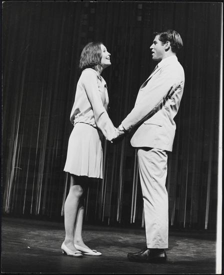 [Marlyn Mason as Kate and Tony Roberts as Charley in "How Now, Dow Jones".]