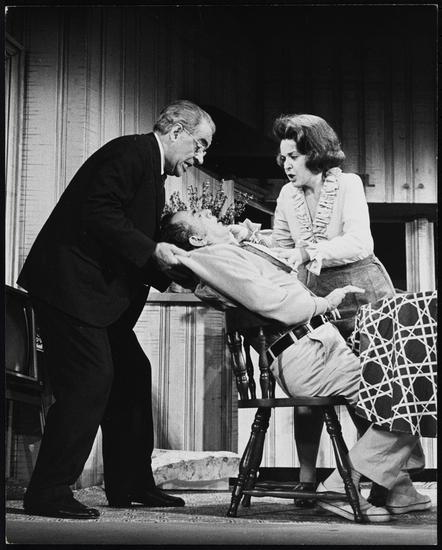 [Simon Oakland as Phil, Sada Thompson in the title role and Conrad Bain as Swede in "Celia".]