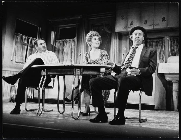 [Simon Oakland as Phil, Sada Thompson in the title role and Conrad Bain as Swede in "Celia".]