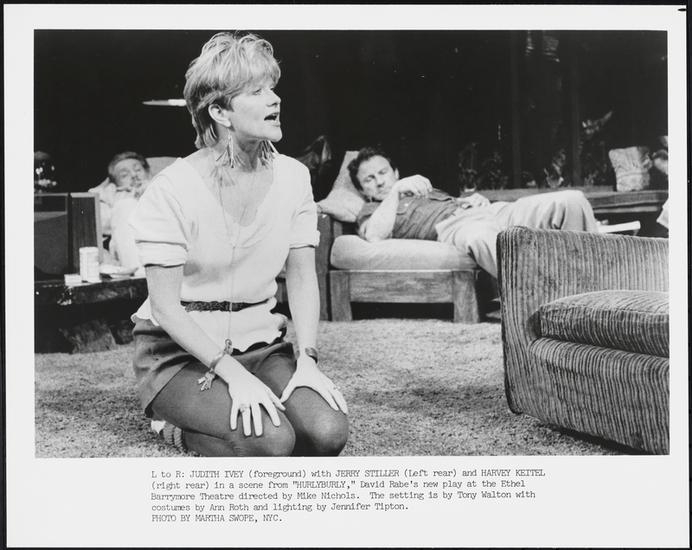 [Christopher Walken as Mickey, Sigourney Weaver as Darlene, and William Hurt as Eddie in "Hurlyburly".]