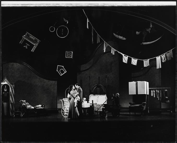 [Carol Lawrence as She (Agnes) and Gordon MacRae as He (Michael) in "I Do! I Do!".]