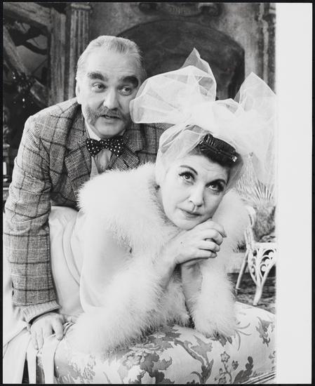 [Eileen Herlie as Lady Fitzbuttress and Anthony Quayle as General Sir Mallalieu Fitzbuttress in "Halfway Up the Tree".]