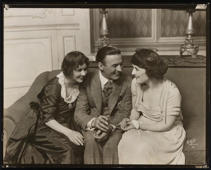 [Jane Grey as Betty Lindsay, Bruce McRae as Harry Lindsay and Schuyler Ladd as Prince Ranjaboulle in Act 2 of "Nearly Married".]