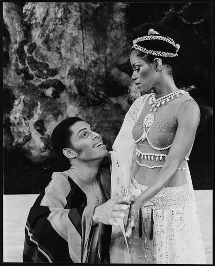 [Melba Moore as Marsinah and Gilbert Price as The Mansa of Mali in "Timbuktu!".]