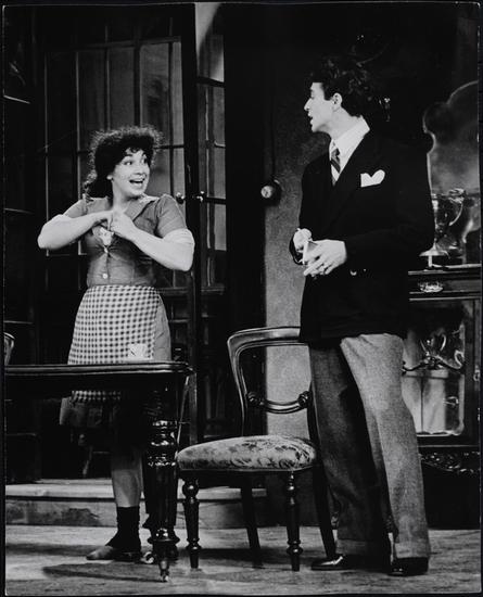 [Joan Plowright with director Franco Zeffirelli during a rehearsal for "Filumena".]