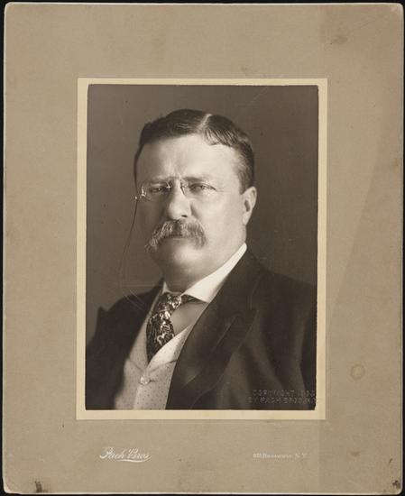 [Theodore Roosevelt and a woman, most likely his wife, riding horses.]