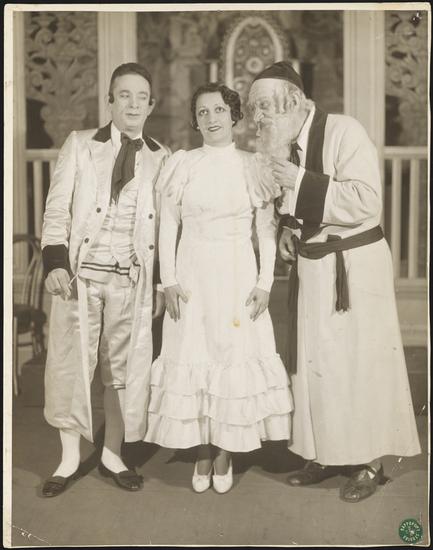 [Morris Strassberg, Lucy Levine and Irving Honigman in an unidentified production.]