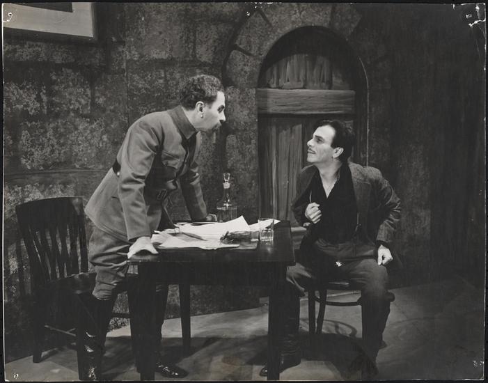 [Jacob Ben-Ami and Menachem Rubin in Dovid Bergelson's "We Will Live".]