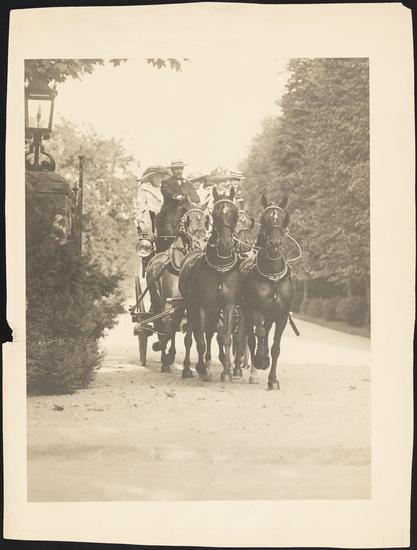 [Mrs. August Belmont with her son, August Jr. in a carriage by their home "By-The-Sea" in Newport.]