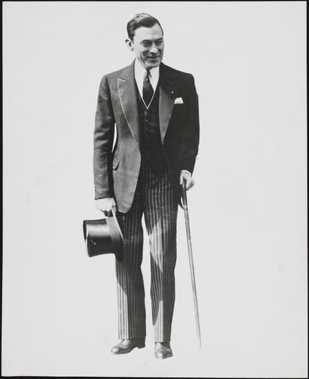 [Mayor Jimmy Walker placing flowers on the ground.]