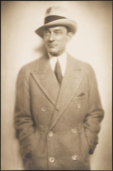 [Mayor Jimmy Walker placing flowers on the ground.]