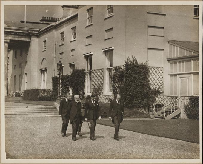 [Mayor Jimmy Walker with British Prime Minister Ramsay MacDonald and other dignitaries.]