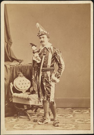 [August Belmont in costume for a fancy dress ball at Delmonico's.]