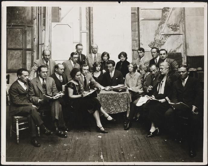 [Jacob Ben-Ami rehearsing with the cast of "The Ship of Saints".]