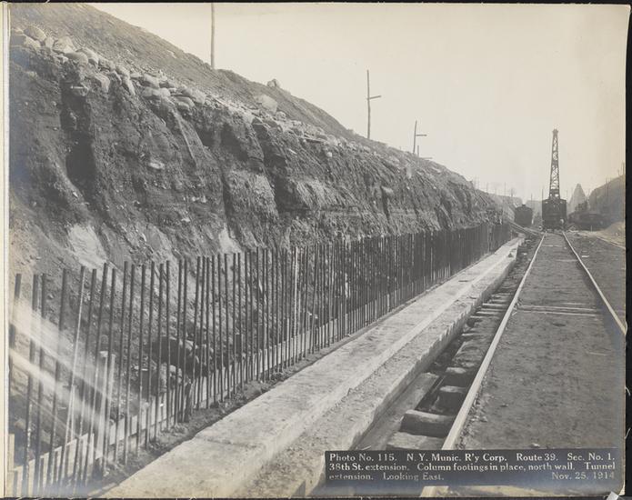 38th St. Extension. Steam Shovel Attacking Old North Retaining Wall Opposite 8th Ave. Looking North.