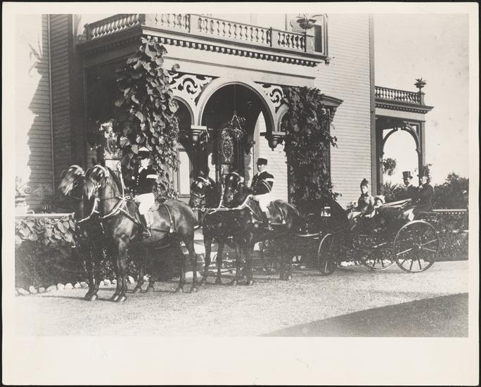 [Mrs. August Belmont with her son, August Jr. in a carriage by their home "By-The-Sea" in Newport.]