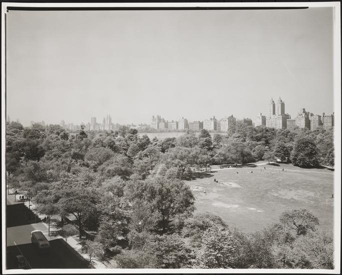 Central Park. View looking west across park from Barbizon Plaza, 106 Central Park South