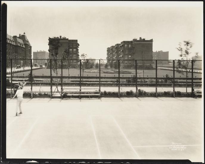 [Hayes Boulevard. Tennis courts and Chateau apartments.]