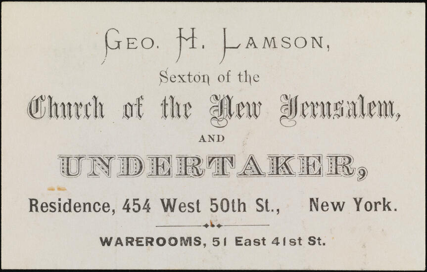 Geo H. Lamson, Sexton of the Church of the New Jerusalem, and Undertaker
