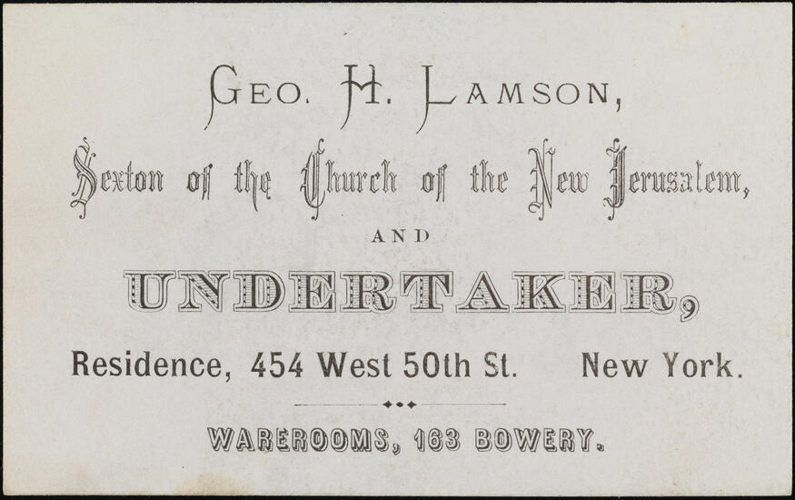 Geo H. Lamson, Sexton of the Church of the New Jerusalem, and Undertaker
