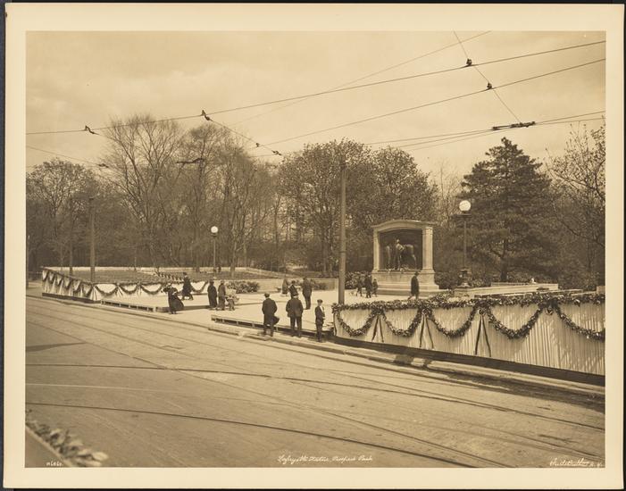 Prospect Park, Brooklyn. Detail of Lafayette Statue. [Mayor's Committee to Welcome British & French War Commissions.]