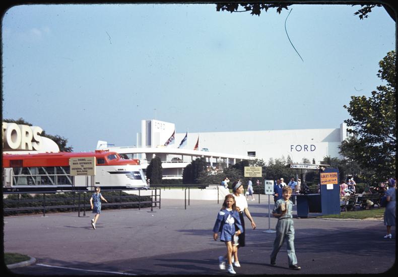 [Communication Zone looking towards the Trylon and Perisphere.]
