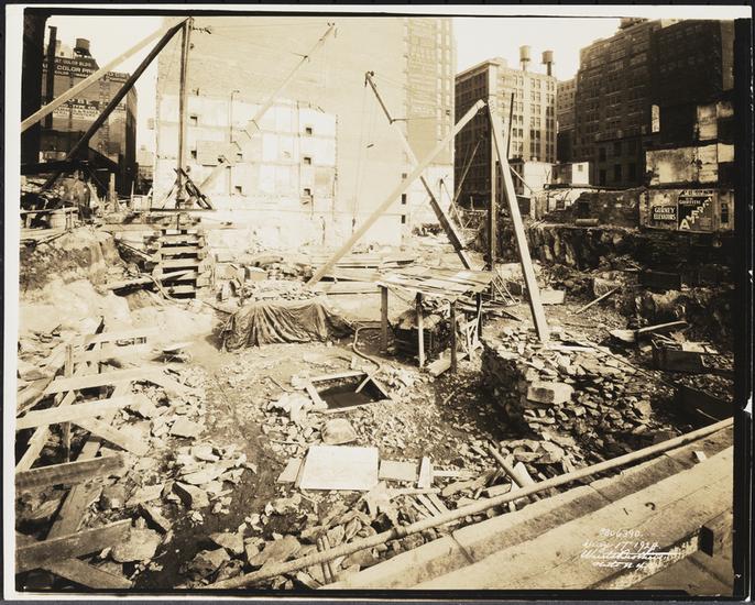 West 38th Street and Eighth Avenue, southeast corner. Construction site. Demolition and excavation