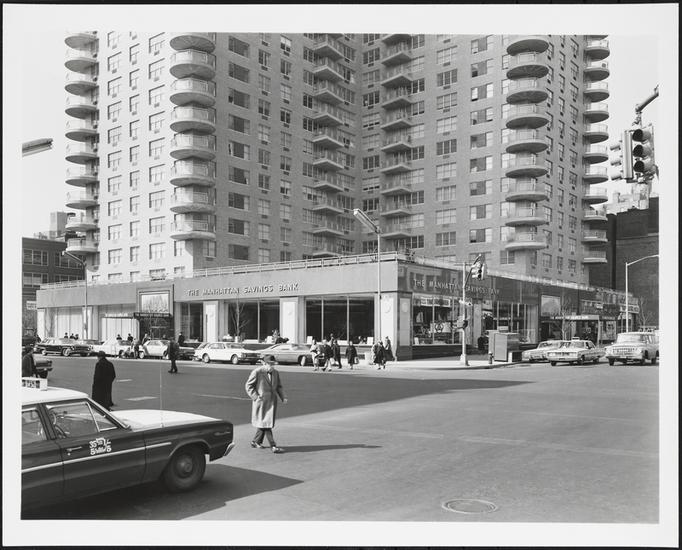 East 86th Street and Third Avenue, southwest corner. Apartment building with Manhattan Savings Bank on ground floor