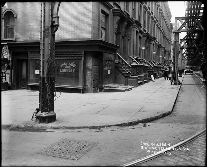 [7th Avenue and West 58th Street, looking north to Central Park.]