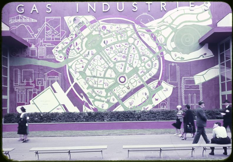 [Petroleum Industries Buidling with a model of an oil derrick.]