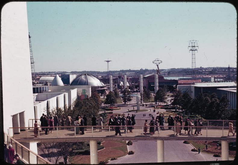 [Approach to the Trylon and Perisphere.]