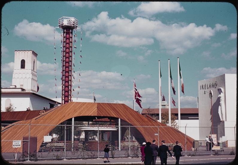 [Belgian Pavilion with the Trylon visible.]
