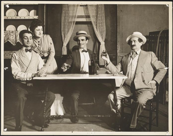[Celia Adler, Leo Fuchs and Jacob Ben-Ami in "Life Marches On".]