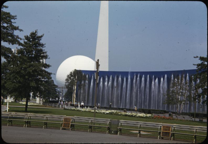 [New York World's Fair. The City of Light with the Trylon and Perisphere in the background.]